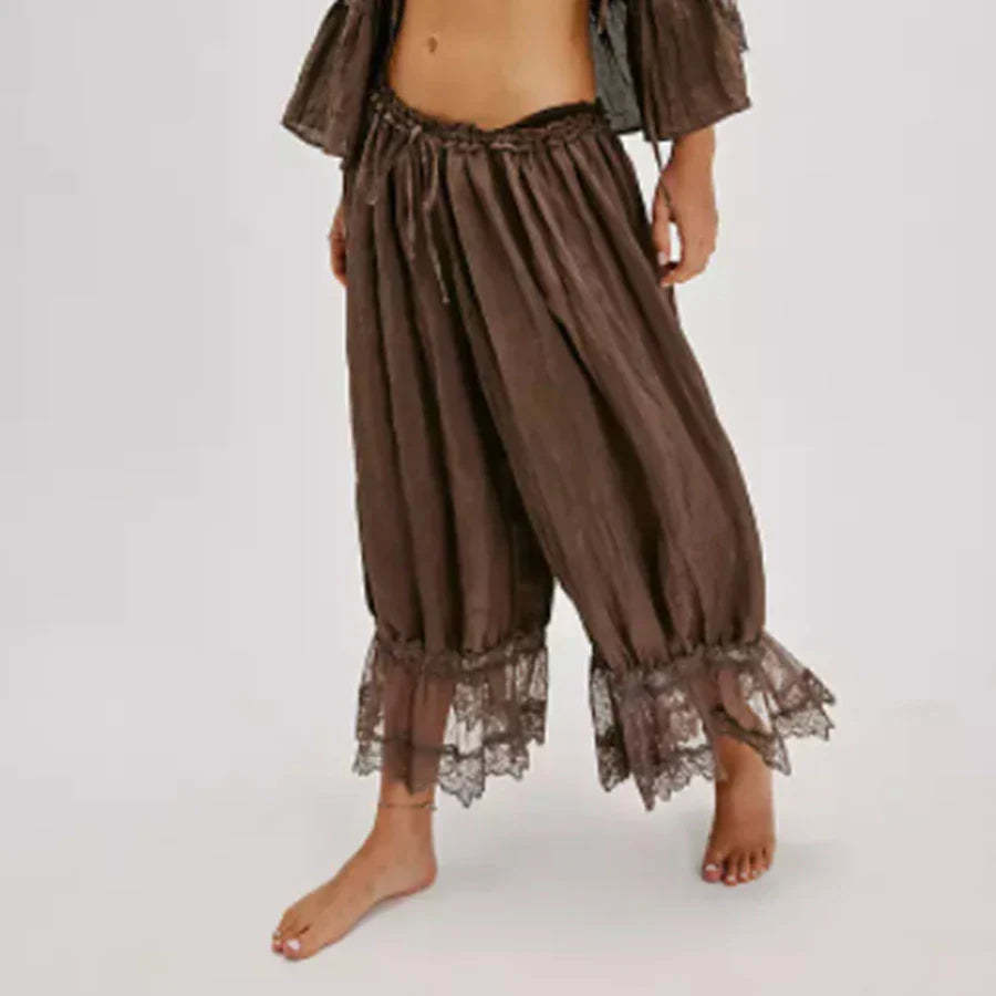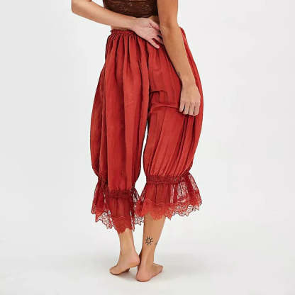 Showcase your elegance with these unique Victorian-style pants. The lightweight fabric and lace details create a refined aesthetic full of femininity.