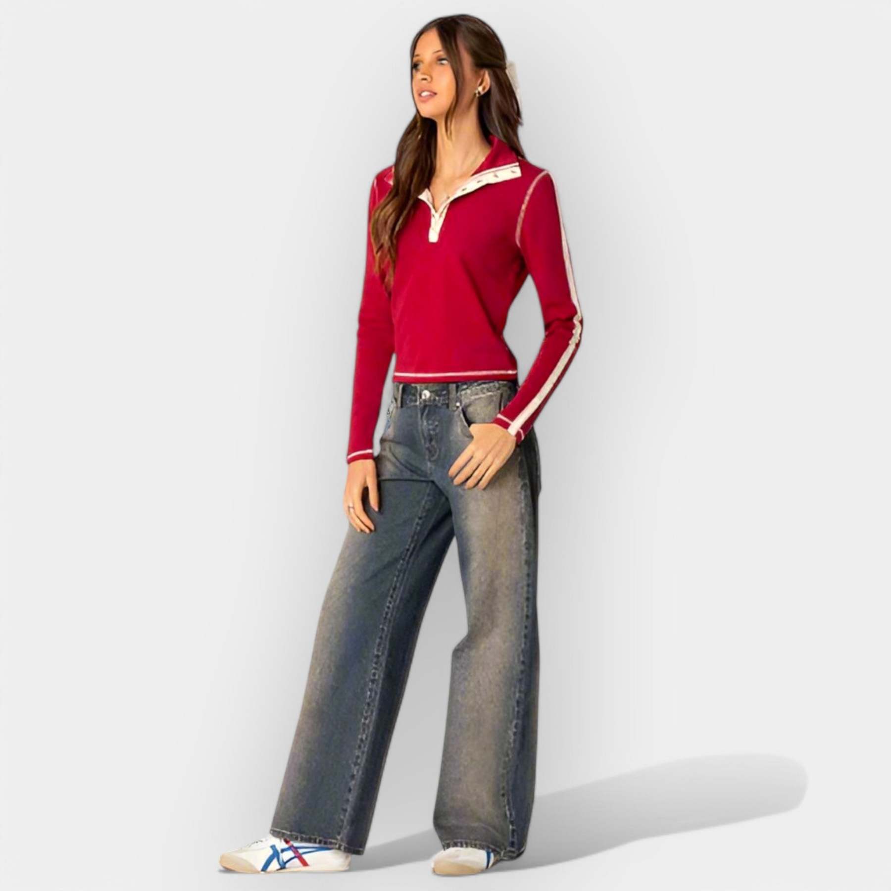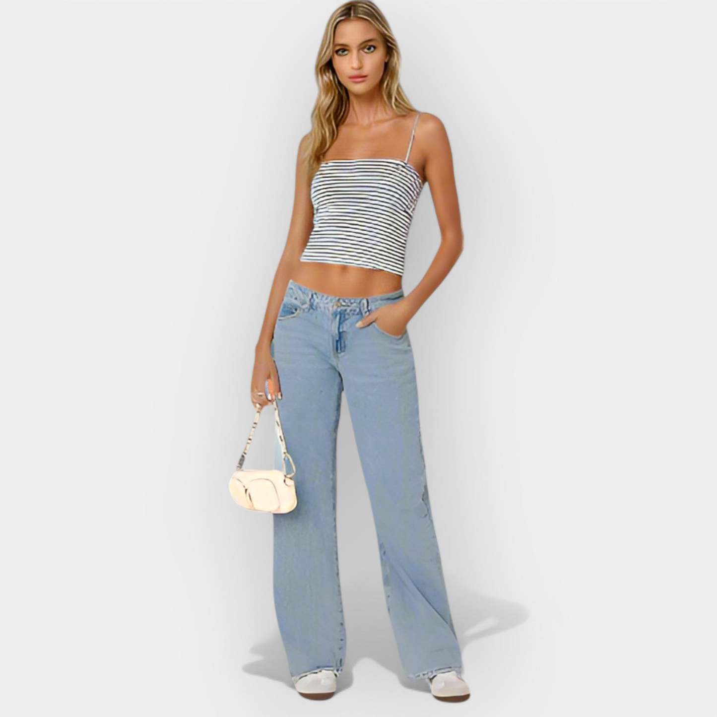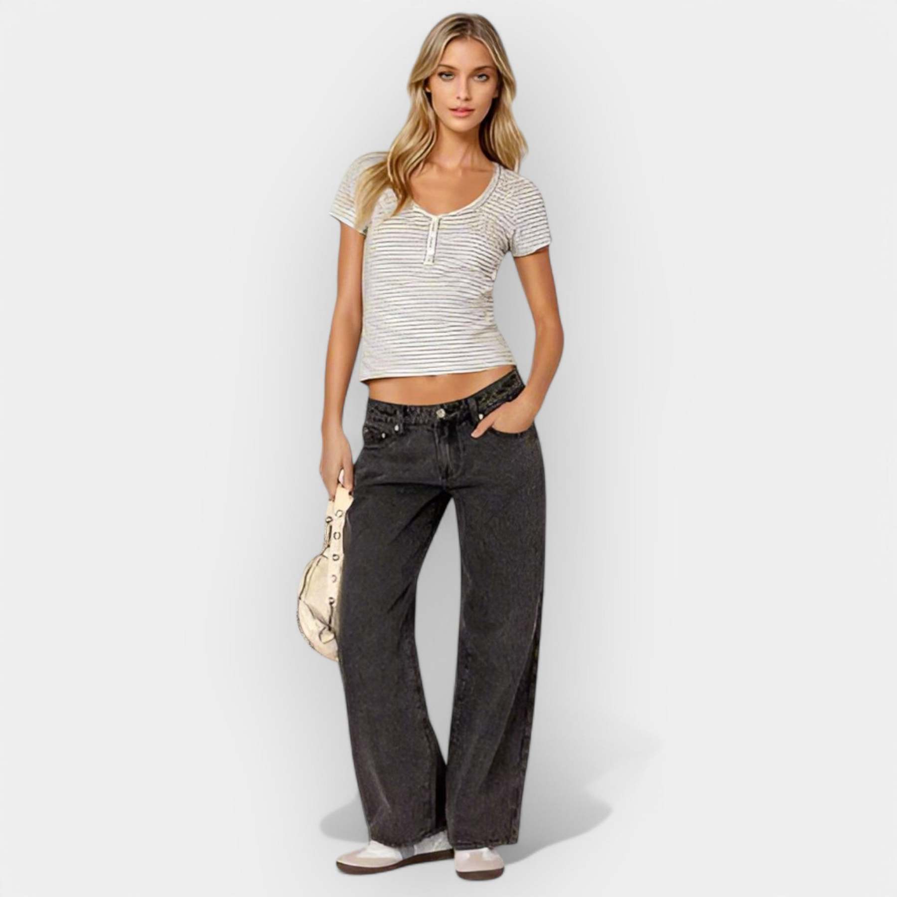 These jeans offer the perfect balance between style and comfort, featuring a low waist and flattering fit. Ideal for everyday looks with a modern character.